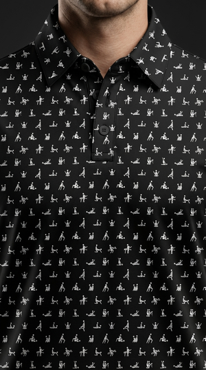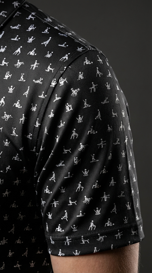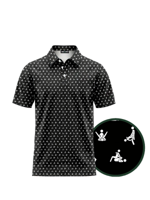 Make your golf buddies laugh with this 100% Funny USF polo featuring a humorous "Sex position", Kama Sutra design. Perfect for tournaments, gifts, or casual rounds!